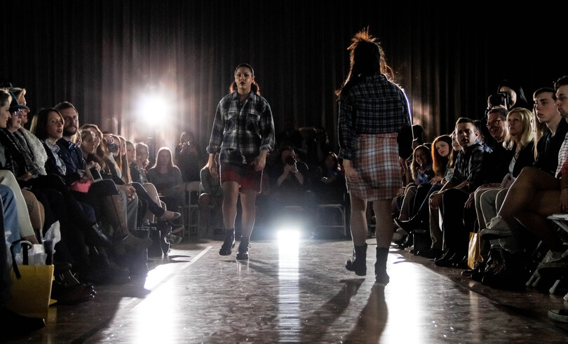 With the room full of white folding chairs organized in rows of four, walls adorned with high fashion editorial photographs and a runway outlined with black tape, patrons were in the right place for a showcase of style.