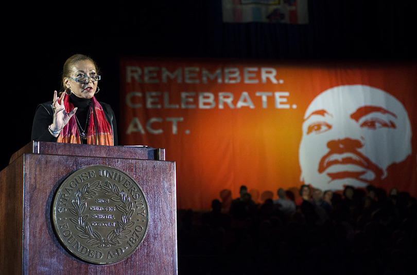 Michele Norris, founder of the Race Card Project, delivered the keynote address at the 30th Annual Martin Luther King, Jr. Celebration, which was held in the Carrier Dome. Frankie Prijatel | Senior Staff Photographer