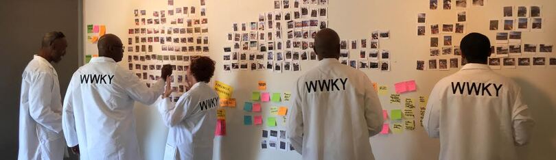 The walls are adorned with photos of people, objects and landmarks that resonate within the Westside neighborhood. Each picture has a red dot with a tail connecting it to a floor map, which indicates the location the photo was taken.