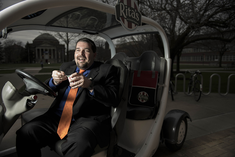 He has tubs of the sugary confection shipped in every year for the engineering and computer science open house. If there is any Rita’s left over, Hoster can be spotted driving around campus in a golf cart, passing out Italian ice to anyone who wants it.