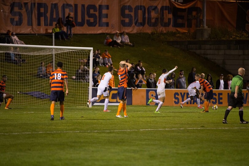In the 40th minute, Clemson’s Alex Hemmingsen broke through the SU ranks and found himself 1-on-1 with Hilpert. SU’s last line of defense rushed forward and waved his left forearm in front of the ball while falling down. The save preserved the lead and SU built momentum, but the Orange wouldn’t find a second goal.