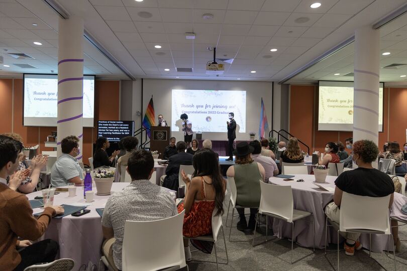 “In addition to the immense accomplishment of completing your degree requirements, some of you might have experienced difficulties expressing your gender identities or sexualities,” Callisto said. “So this ceremony is an opportunity to celebrate as your authentic self, and be surrounded by your queer family.”