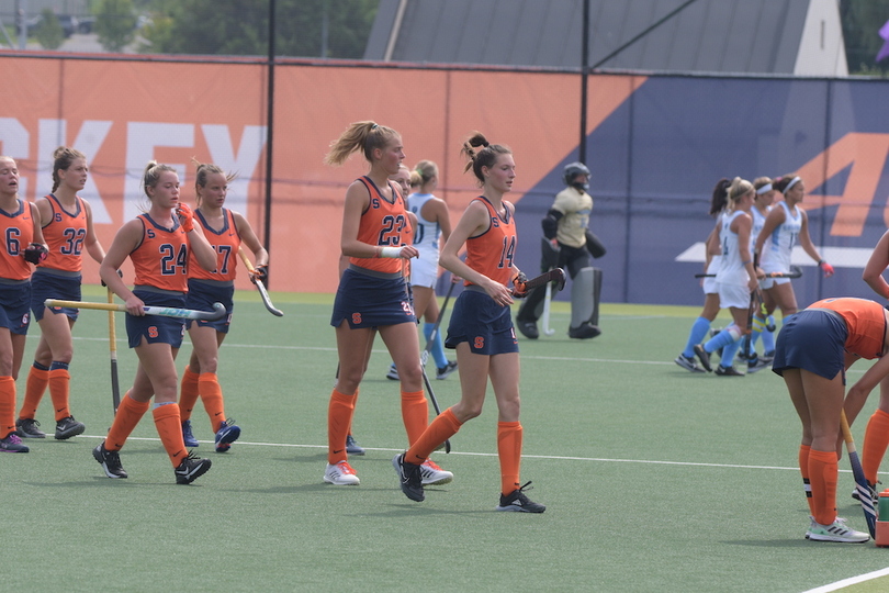 Syracuse’s defensive woes continued into the second quarter, with the team allowing three more shots and two more penalty corners. The Orange allowed a third goal four minutes into the period, after Ali McCarthy took a shot that beat Syracuse’s sophomore goalie, Brooke Borzymowski. She was eventually replaced by fellow sophomore Louise Pert at halftime.