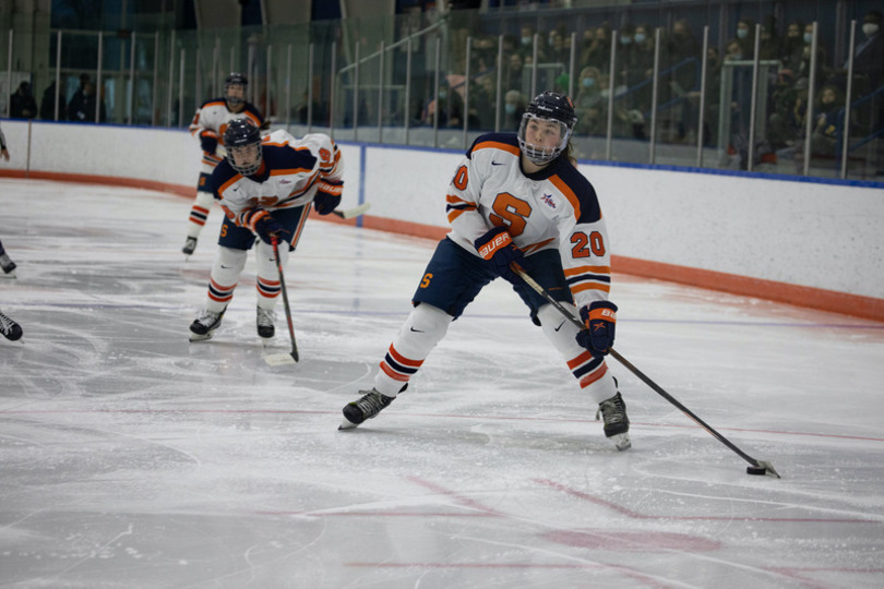 Madison Primeau scored on Syracuse's second attempt in the shootout period to defeat Holy Cross. Trent Kaplan | Staff Photographer