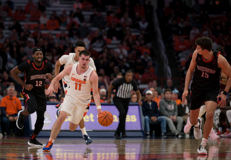 The offense looked stale throughout with little motion, only screens, drives from Mintz and the occasional post-up inside to Edwards. The center’s offensive game still isn’t completely polished, and whatever moves he tried inside rarely created enough room for open shots. The Orange, missing Girard and Mintz’s production, had nobody else to turn to in key situations Tuesday night.