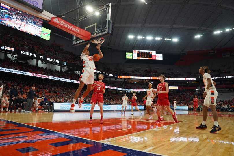 Cornell came into the matchup with Syracuse averaging 11.9 3-pointers per game, tied with Utah State for the most in the country. The Big Red converts 33.5% of those attempts from range. There were going to be plenty of missed shots from long range — the grand total ended up being 35 missed 3s — and Syracuse needed Edwards down low to keep grabbing rebounds like he’s been doing over the last few games.