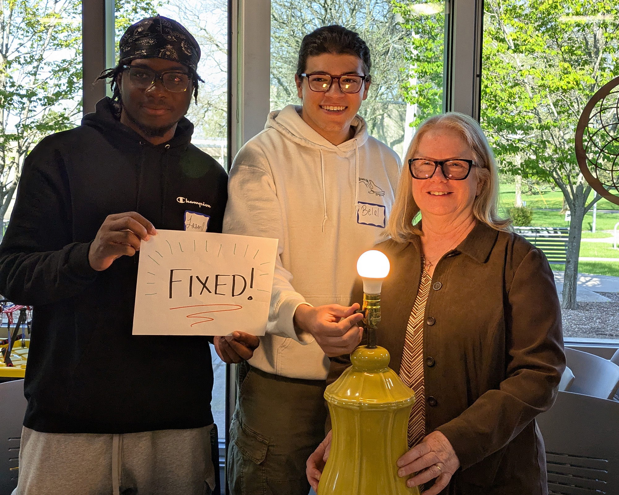 Repair Cafe CNY held their first volunteer-run repair event on May 10. Attendees brought everything from broken sandals and stuffed animals to weed wackers and lamps to be repaired. Courtesy of Morgan Ingraham