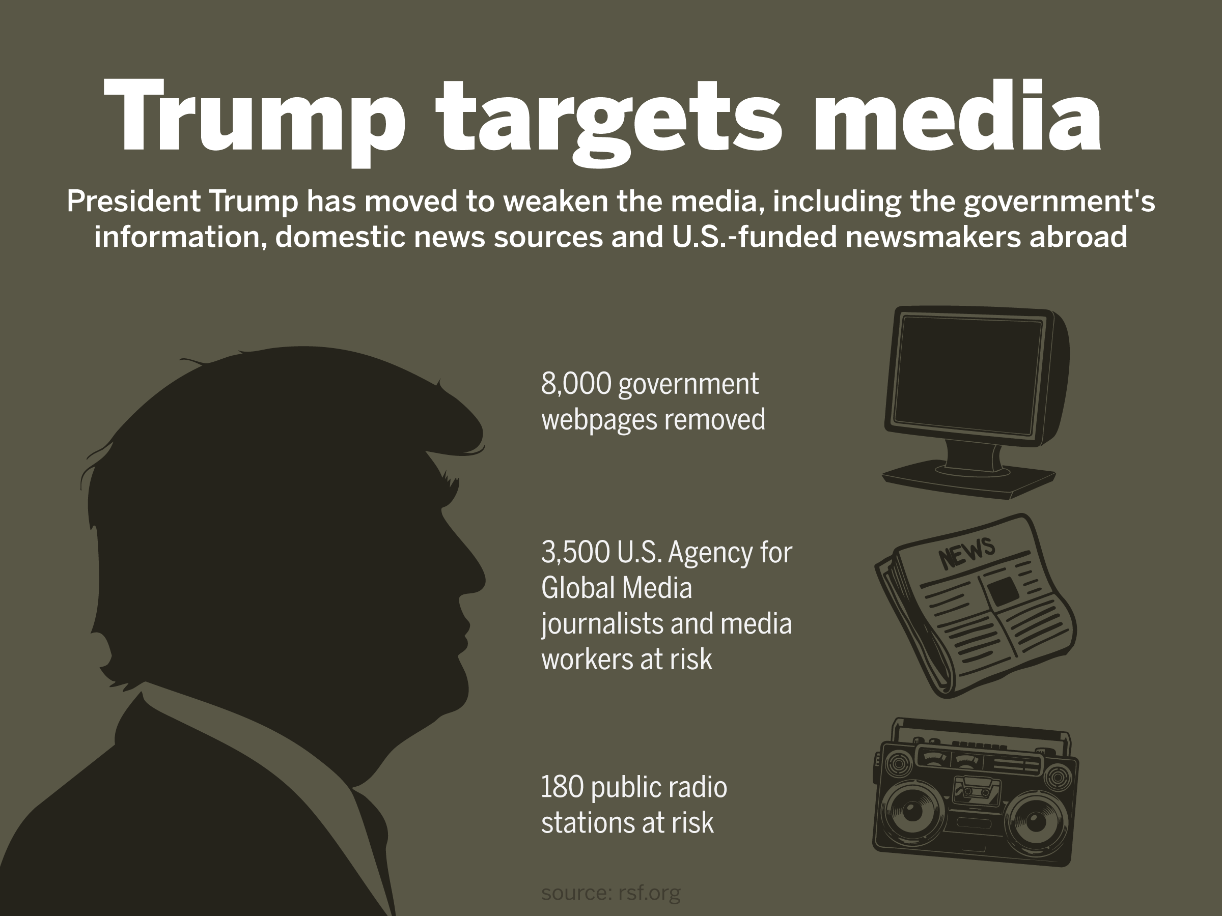 Our columnist writes President Donald Trump’s so-called “free speech absolutism” applies only to favorable language. His lawsuits and cancellations threaten the free press, pushing America deeper into failing First Amendment rights. Sarah Yudichak | Contributing Illustrator