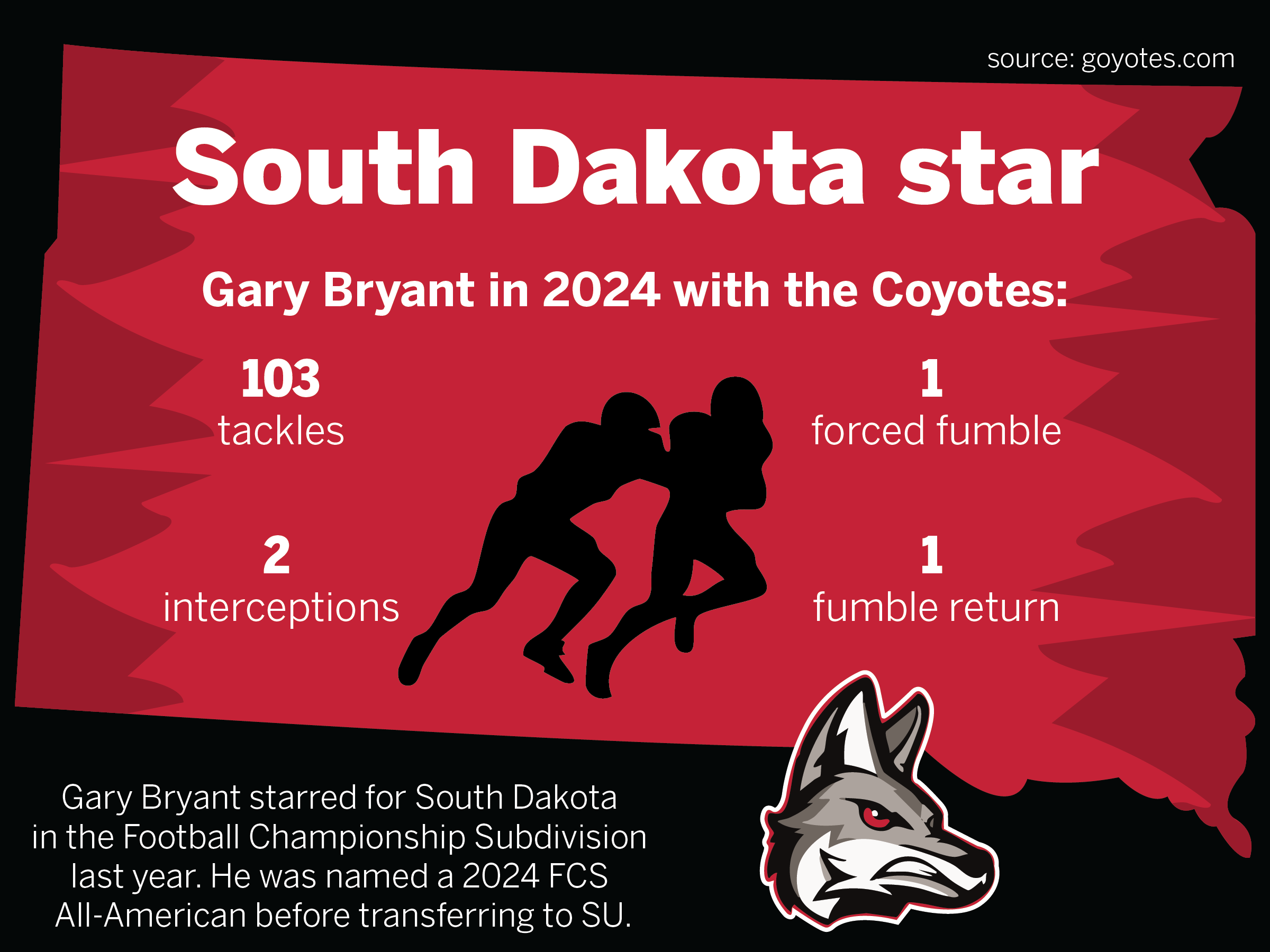 Bryant evolved into an FCS All-American in 2024. His 103 tackles garnered interest from other schools, but Bryant stayed at South Dakota throughout the spring. However, once the spring transfer portal opened, he entered.