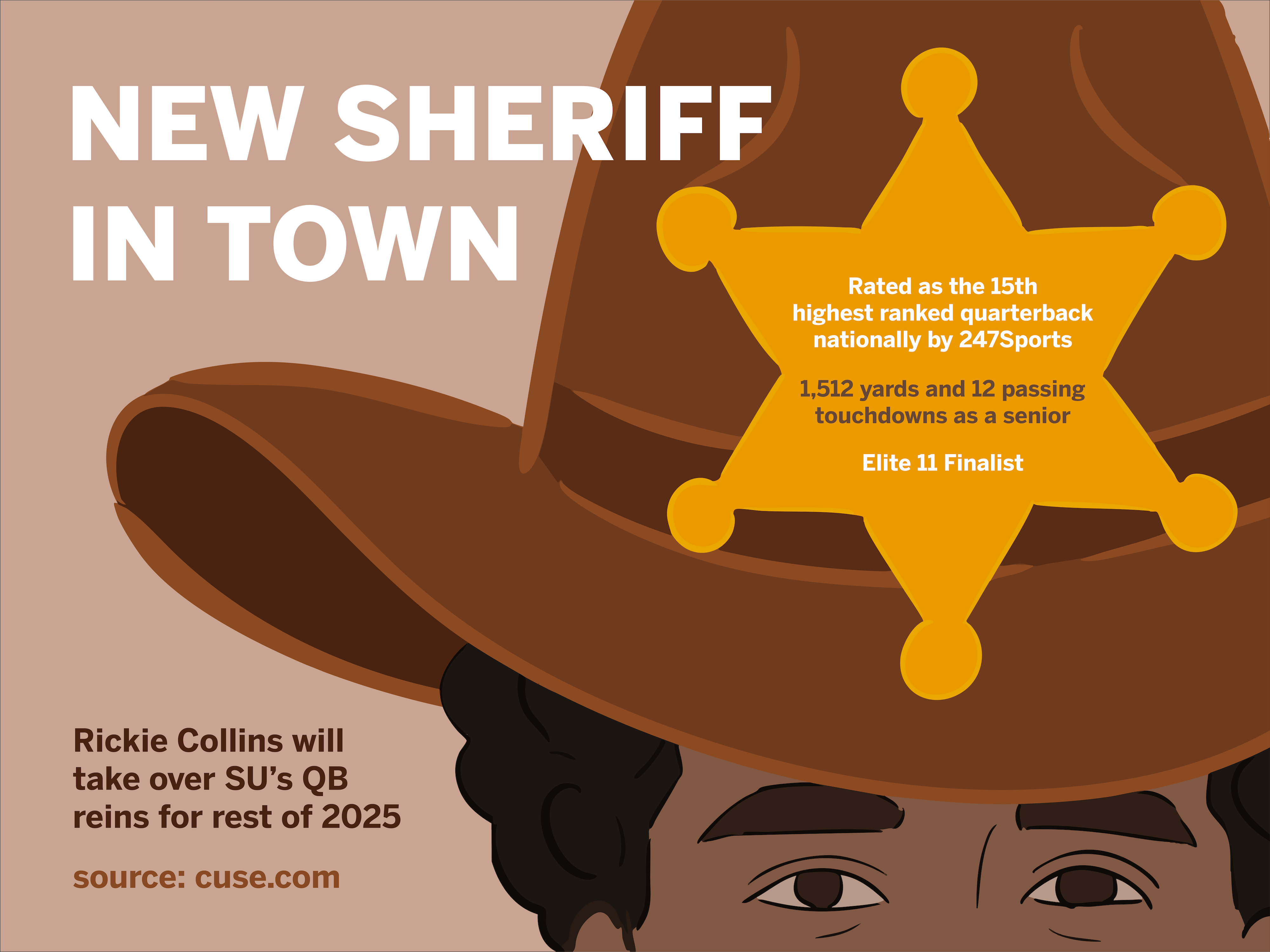 He chose the Orange and was named the starter entering fall camp. Though he lost the starting role to Notre Dame transfer Steve Angeli to begin the year, Collins will be thrust into the spotlight as Syracuse’s starting quarterback for the foreseeable future after Angeli suffered a torn Achilles in SU’s win over Clemson.