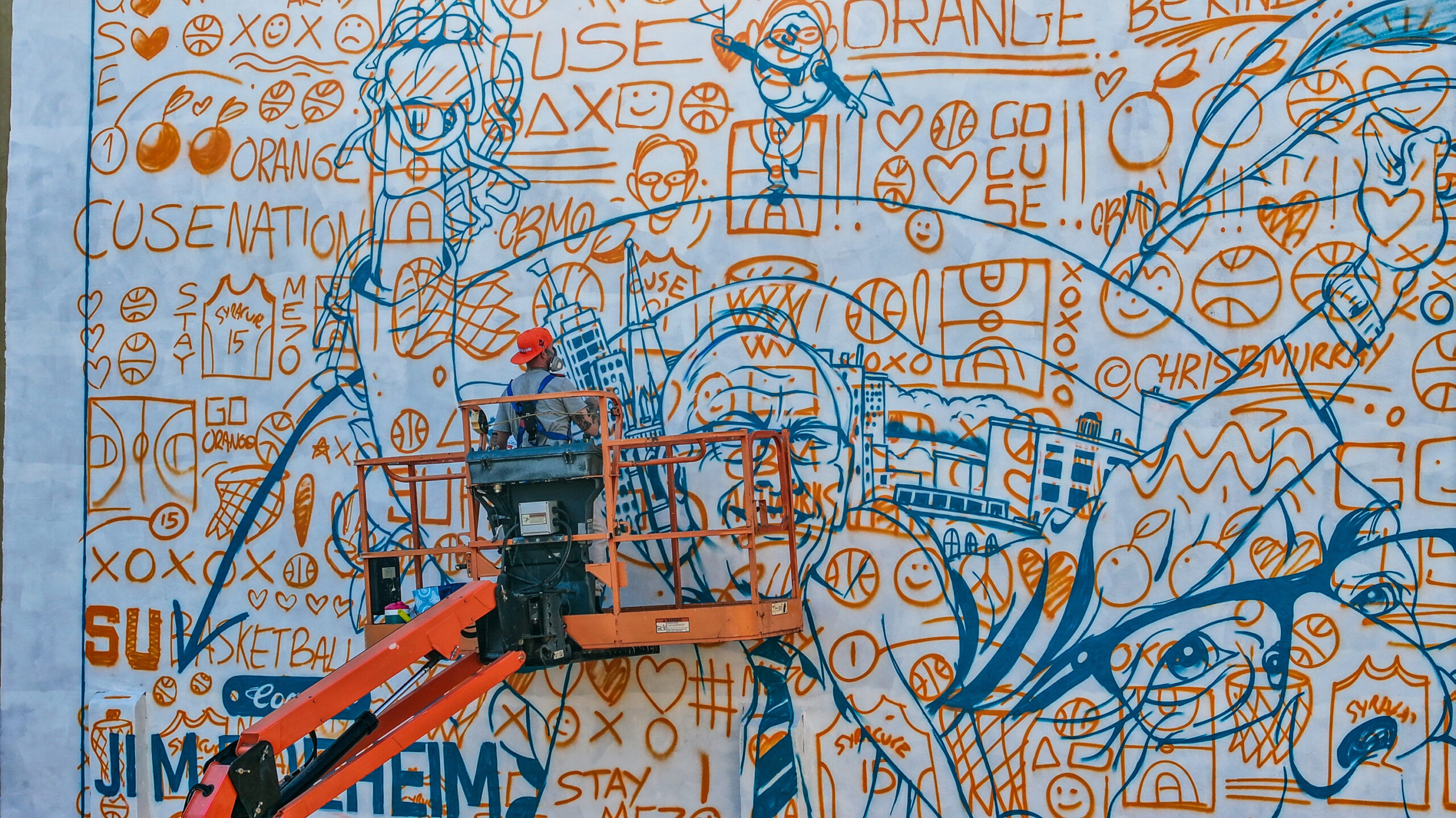Nolan, who’s familiar with Murray’s design style, was quick to jump at the opportunity to be part of the project. A lifelong Syracuse resident, Nolan grew up with Syracuse football and basketball. Connecting Murray with other donors helped secure the mural’s funding, Nolan said.