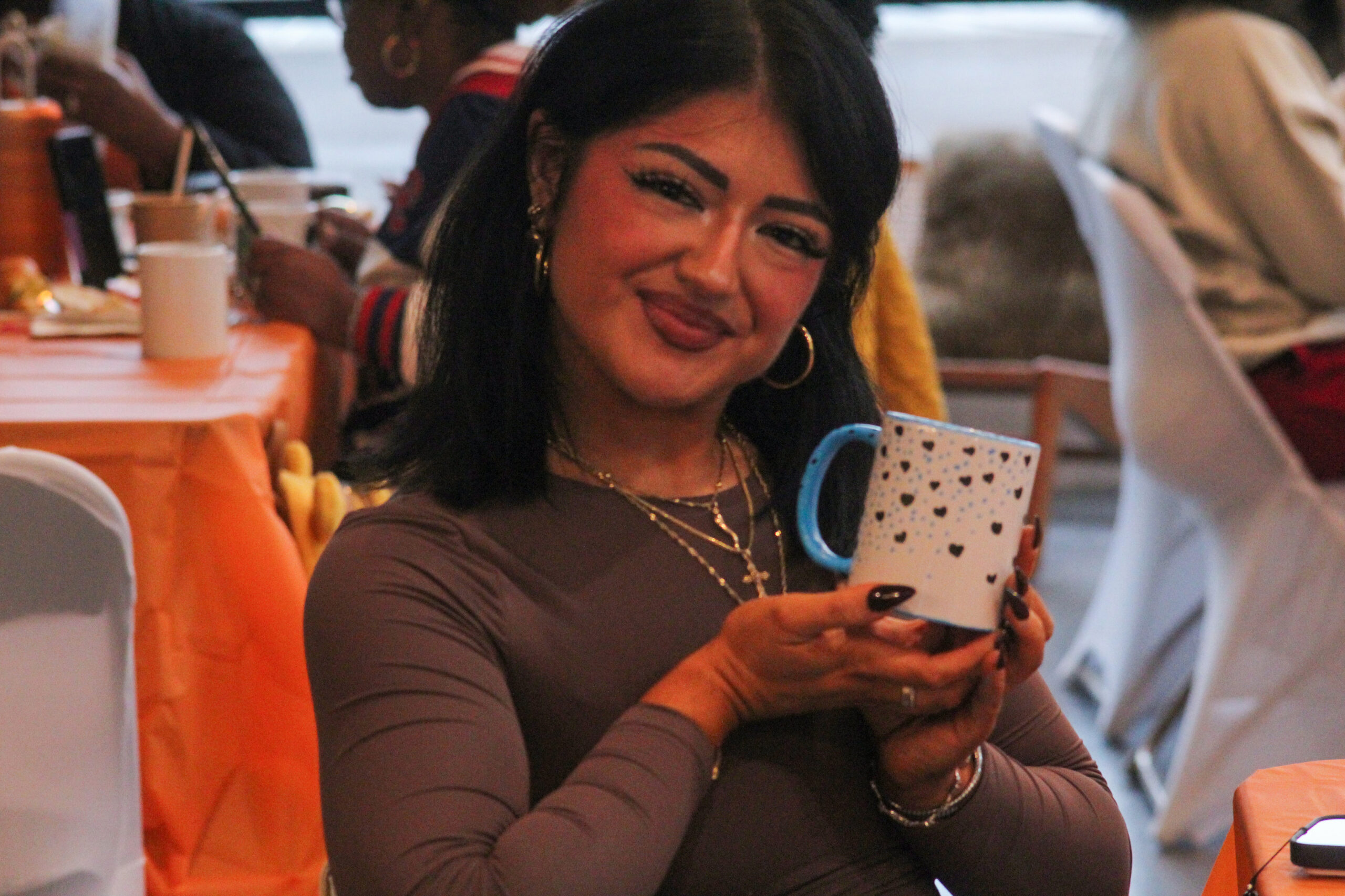 Hanna Smith, a local resident, shares the cup she decorated at The Society. It was Craft Club by Cozy Crafts first event. Latina Jacobs | Contributing Writer