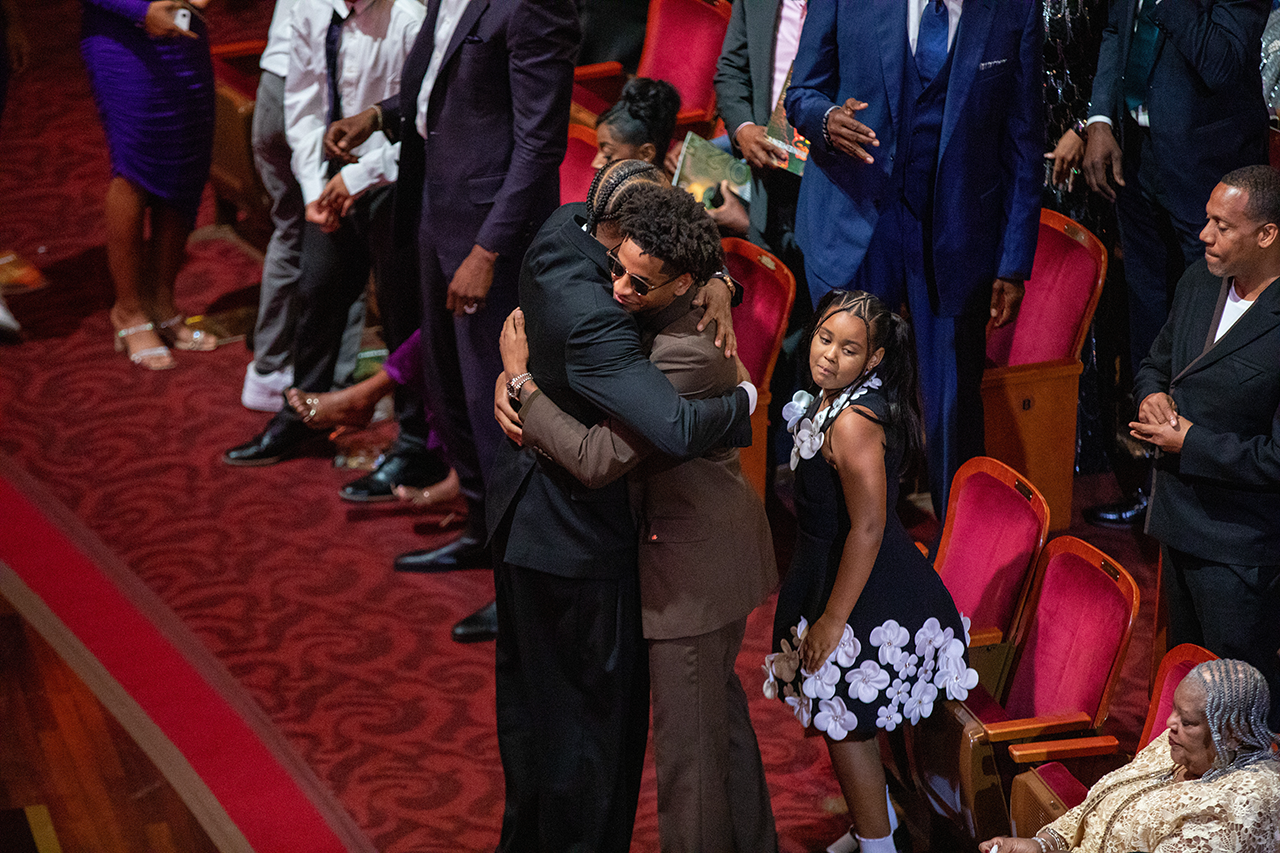 At Carmelo’s Hall of Fame Induction in September, Kiyan Anthony hugs his father. The two’s close bond has helped prepare Kiyan for his freshman season at Syracuse, where he’ll try to forge his own path. Leonardo Eriman | Photo Editor