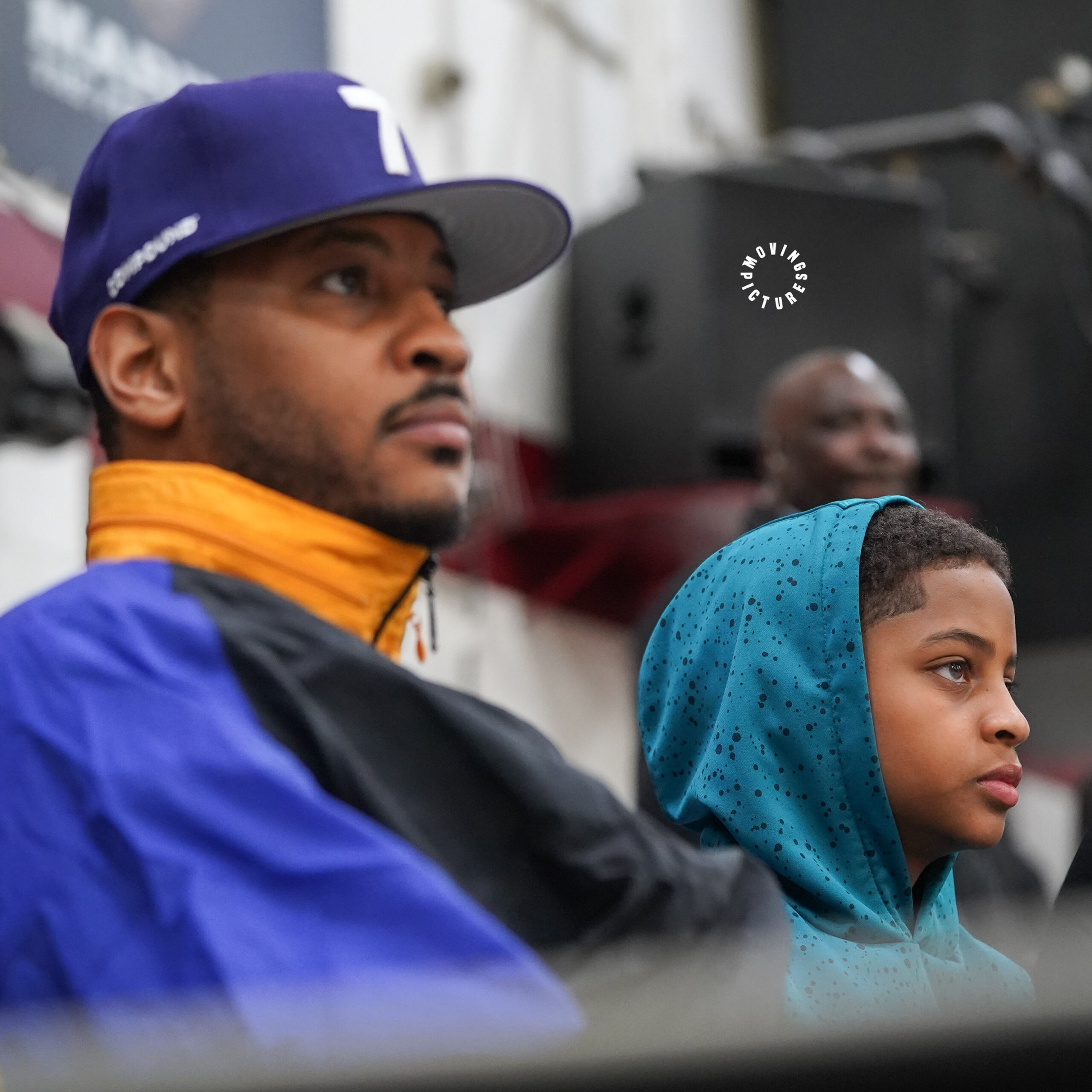 Kiyan Anthony sticks close to his father Carmelo’s side as a young kid. Kiyan was often influenced by his father growing up, leading to the two doing early-morning workouts together in high school. Courtesy of Hector Martinez, Moving Pictures