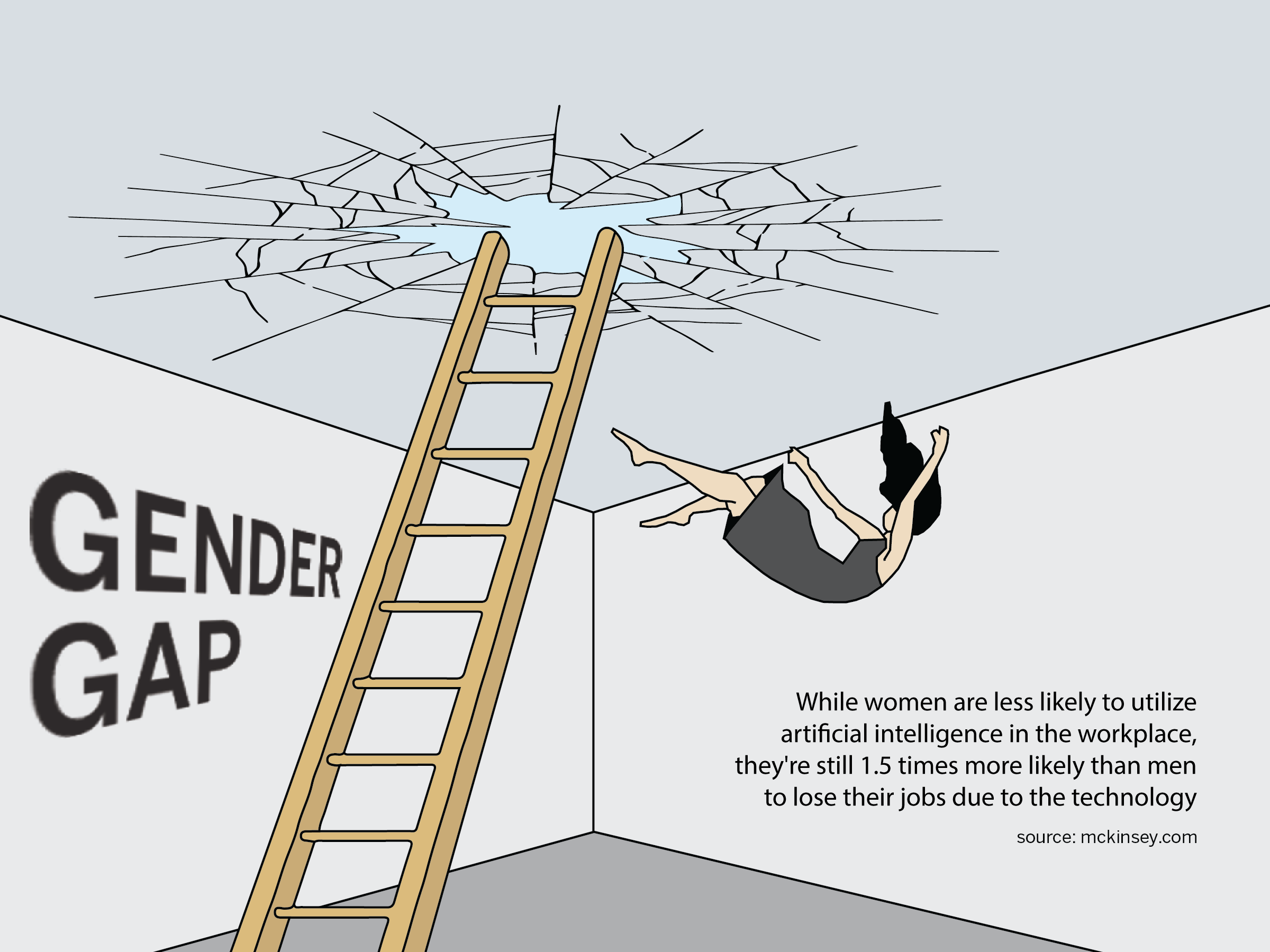 AI is practically unavoidable but also raises ethical and environmental concerns, our columnist writes. She admits its innovation yet critiques the obstacles AI levies against the progress of gender equality in the workplace. Jalyn Cronkrite | Contributing Illustrator