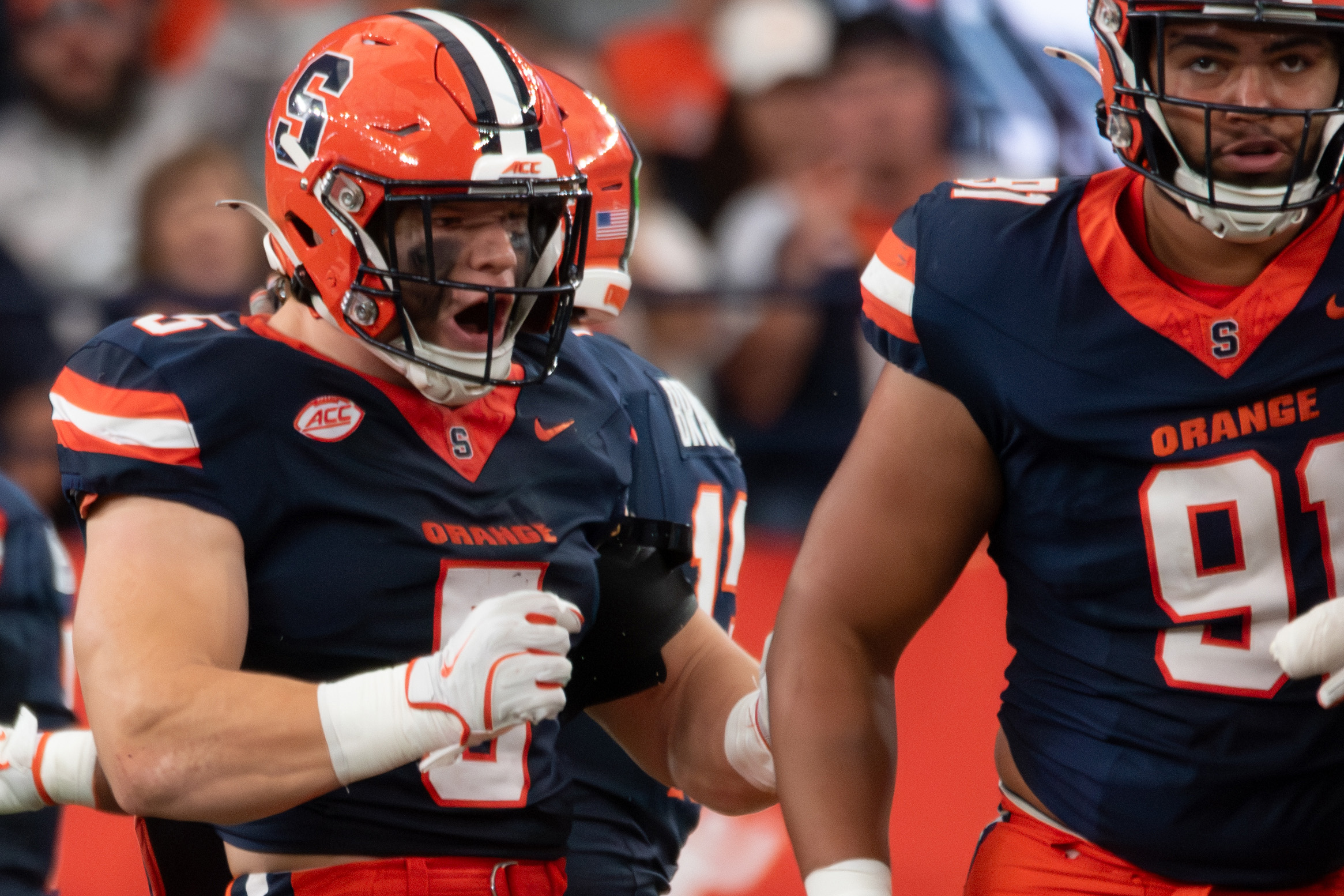Though Syracuse’s defense is statistically the worst in the Atlantic Coast Conference, allowing over 448 yards per game, Deslauriers remains a bright spot. Through six contests, he’s received a 79.0 defensive grade from Pro Football Focus, forcing two fumbles in Syracuse’s win over Clemson and recording two pass deflections to seal its overtime victory over UConn.