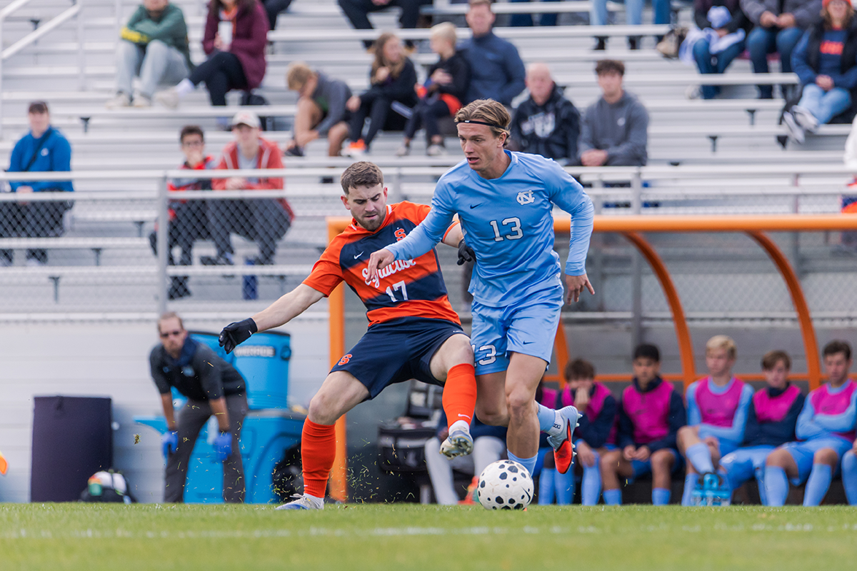 Though UNC fired six first-half shots, SU’s defense withstood the barrage. Goalie Tomas Hut stole the show early. In the eighth minute, he stopped a low shot from Nacho Abeal — who leads the Tar Heels in both goals and assists — then dove right to punch out Charlie Antonelius’ strike nine minutes later.