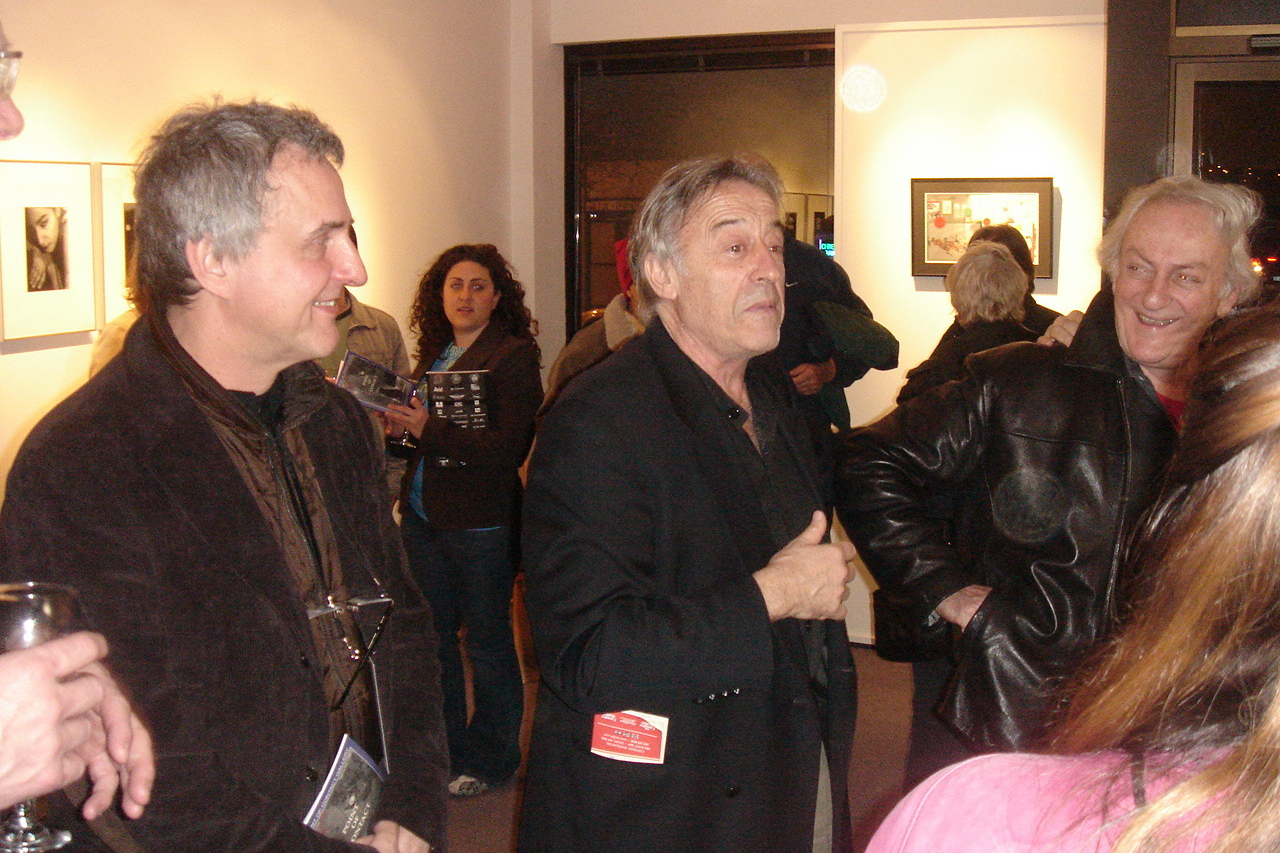 Pedro Cuperman with artist Leandro Katz at a Point of Contact exhibit opening in 2005. The 2005 gallery space on East Genesee Street was Point of Contact’s first, and they held exhibitions there until 2012. Photo courtesy of Teresita Paniagua