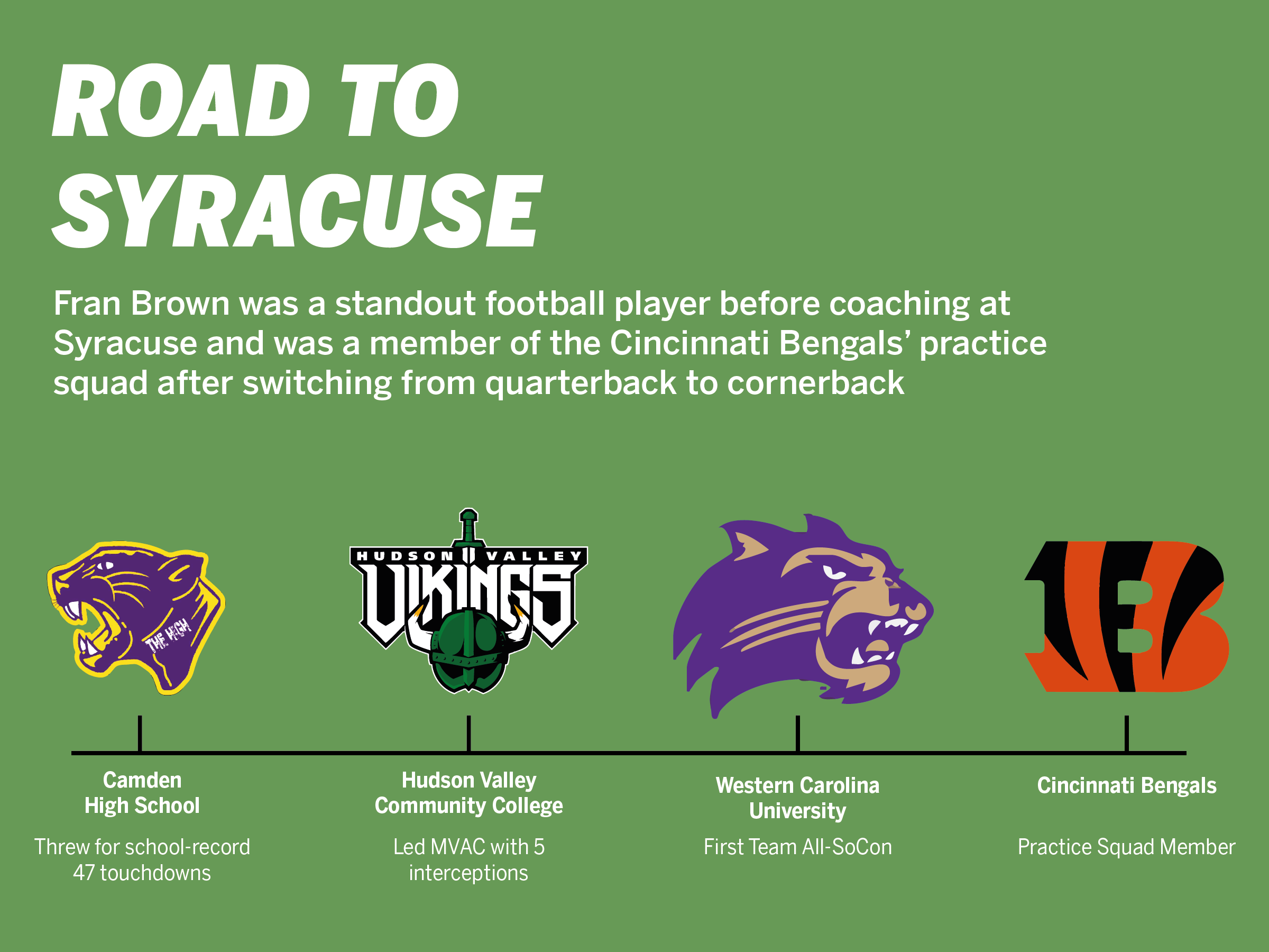 He earned First Team All-SoCon honors at Western Carolina before a short stint on the Bengals practice squad from 2007-08. The Daily Orange spoke with multiple of Brown’s coaches and teammates to detail his playing career before hitting the sidelines and leading the Orange into a new era as their head coach.