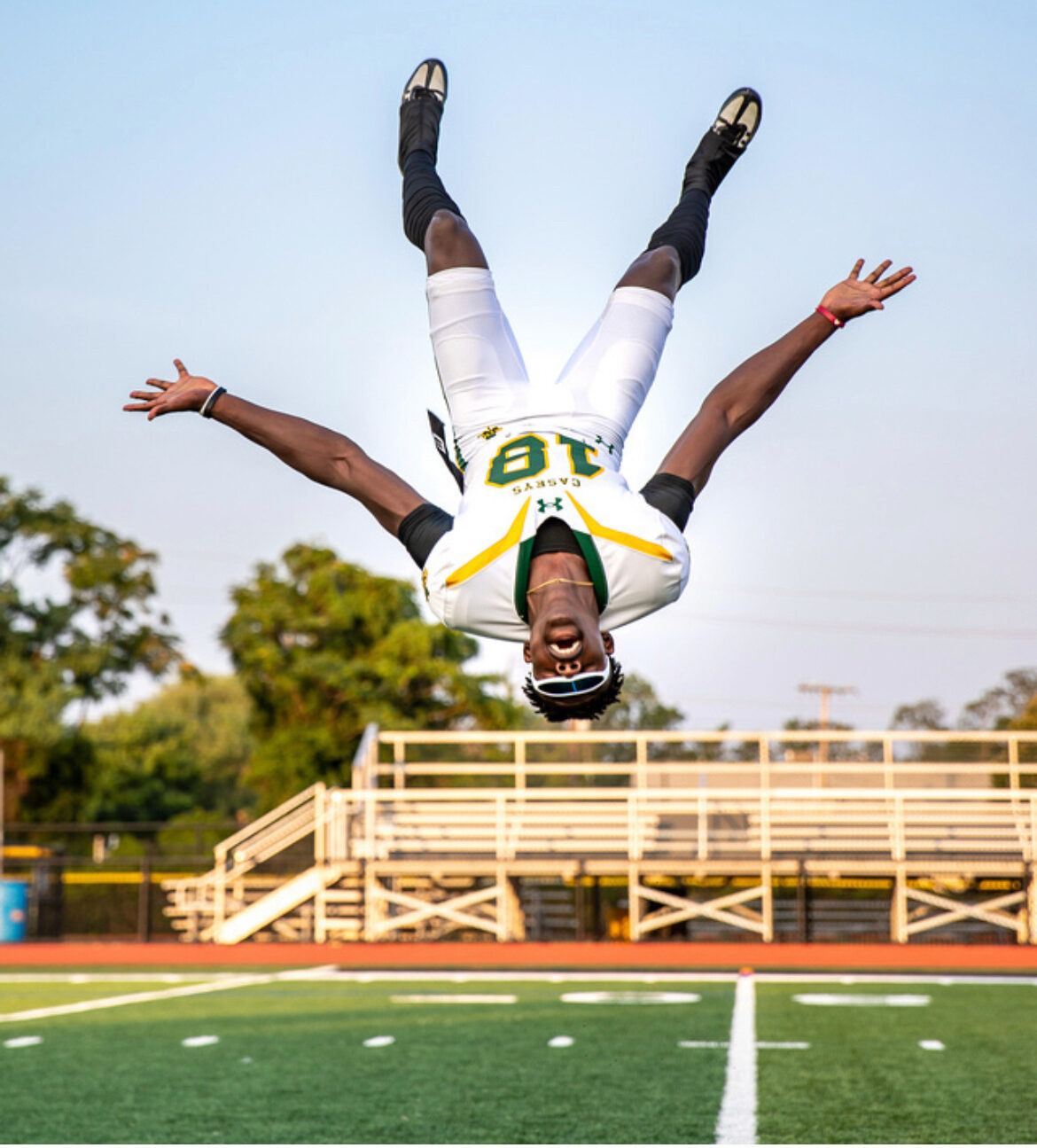 Emanuel Ross hits a backflip while at Red Bank Catholic High School. As a senior, Ross was a First-Team All-State selection, displaying the big-play potential he could bring to Syracuse if given a chance. Courtesy of Joel Ross