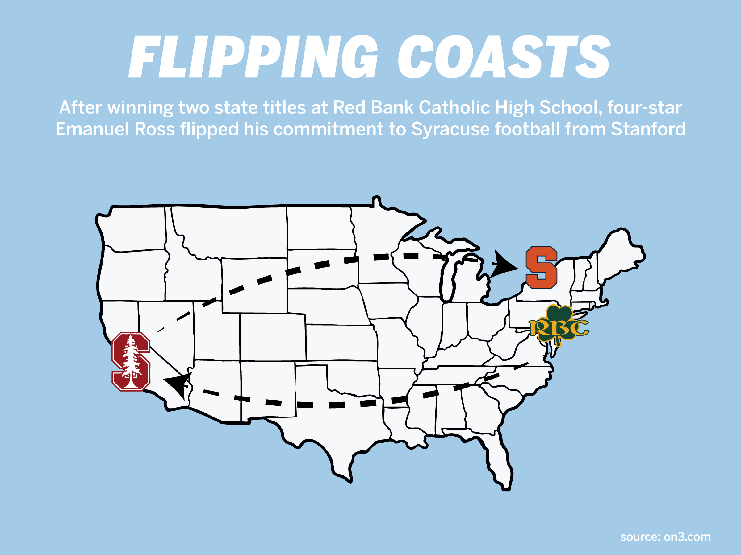 He covered Quincy Porter (Ohio State), De’Zie Jones (Ohio State), Michael Thomas III (Rutgers) and others. Lang mentioned the revelation to Syracuse head coach Fran Brown, who flipped Ross from Stanford to SU within weeks of getting hired. Lang never suggested a position change, but he still felt Ross could be a bona fide Division I cornerback.