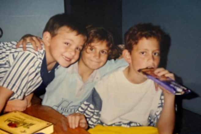A young Tiana Mangakahia (center) wraps her arms around two of her older brothers. As a child, Tiana loved to shimmy up the light pole in front of her house with her brothers. Courtesy of Cynthia Mangakahia
