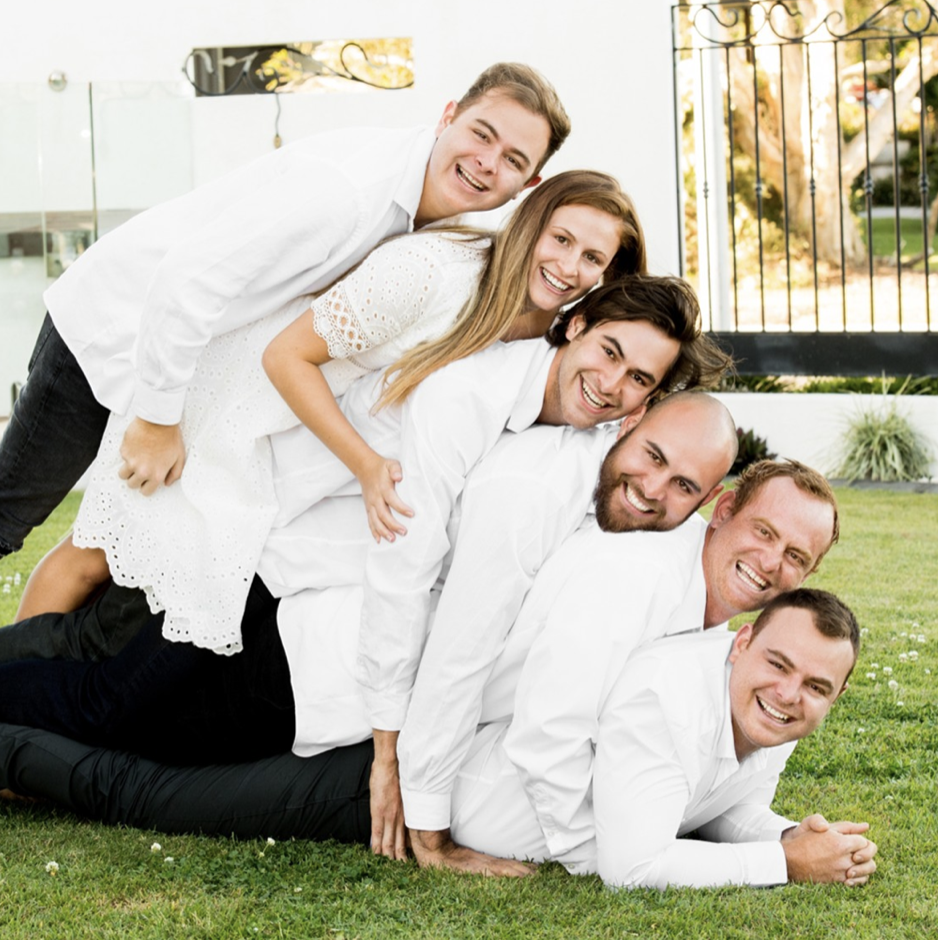 Clad in white, Tiana Mangakahia poses alongside her brothers for a family picture. Growing up, Tiana wanted to do anything and everything that her brothers did. Courtesy of Cynthia Mangakahia