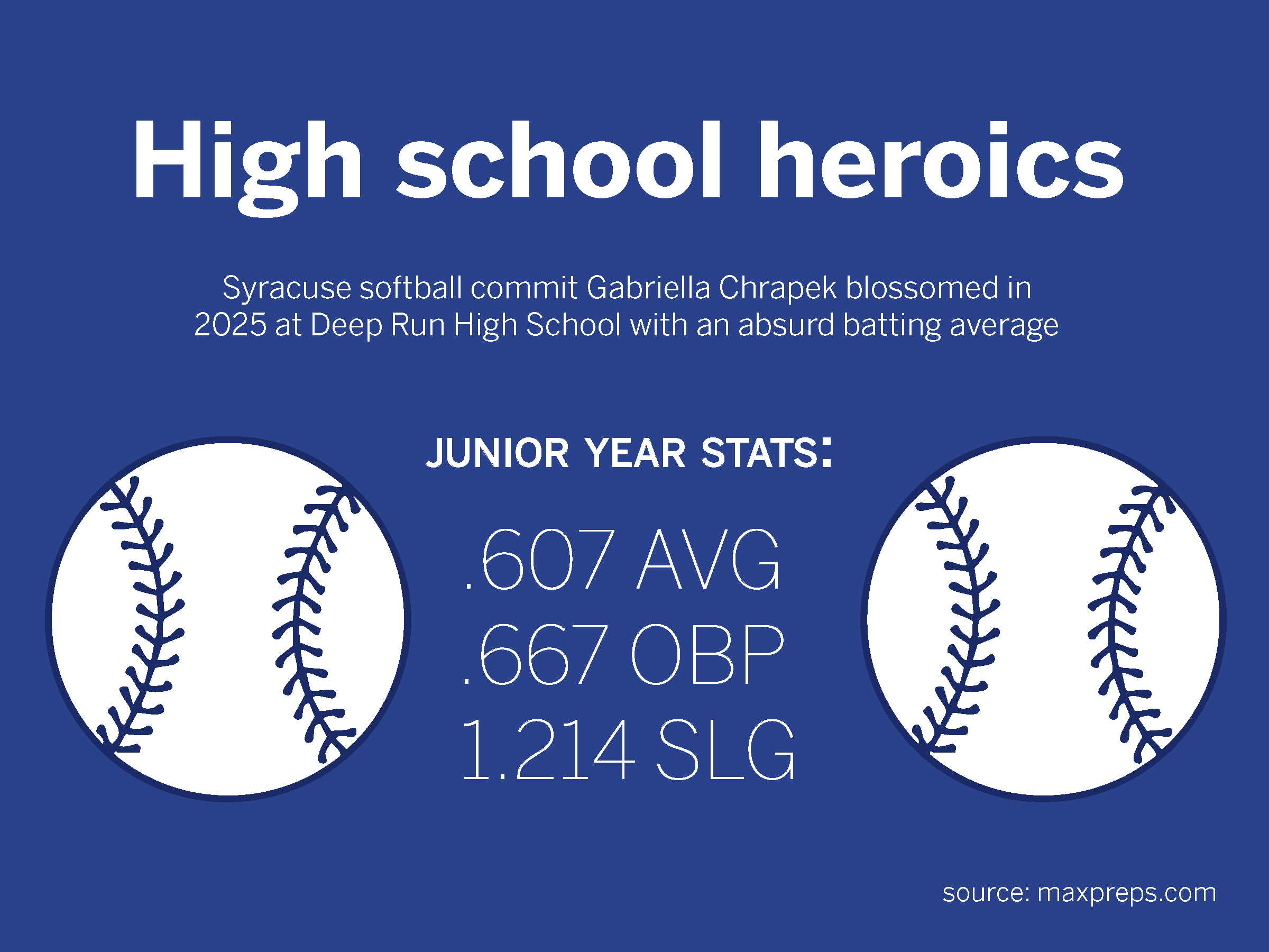 Chrapek said the Orange’s team camaraderie was a deciding factor in her recruitment. Despite receiving an offer from James Madison, which is closer to Deep Run, Chrapek wanted the challenge of the Atlantic Coast Conference.