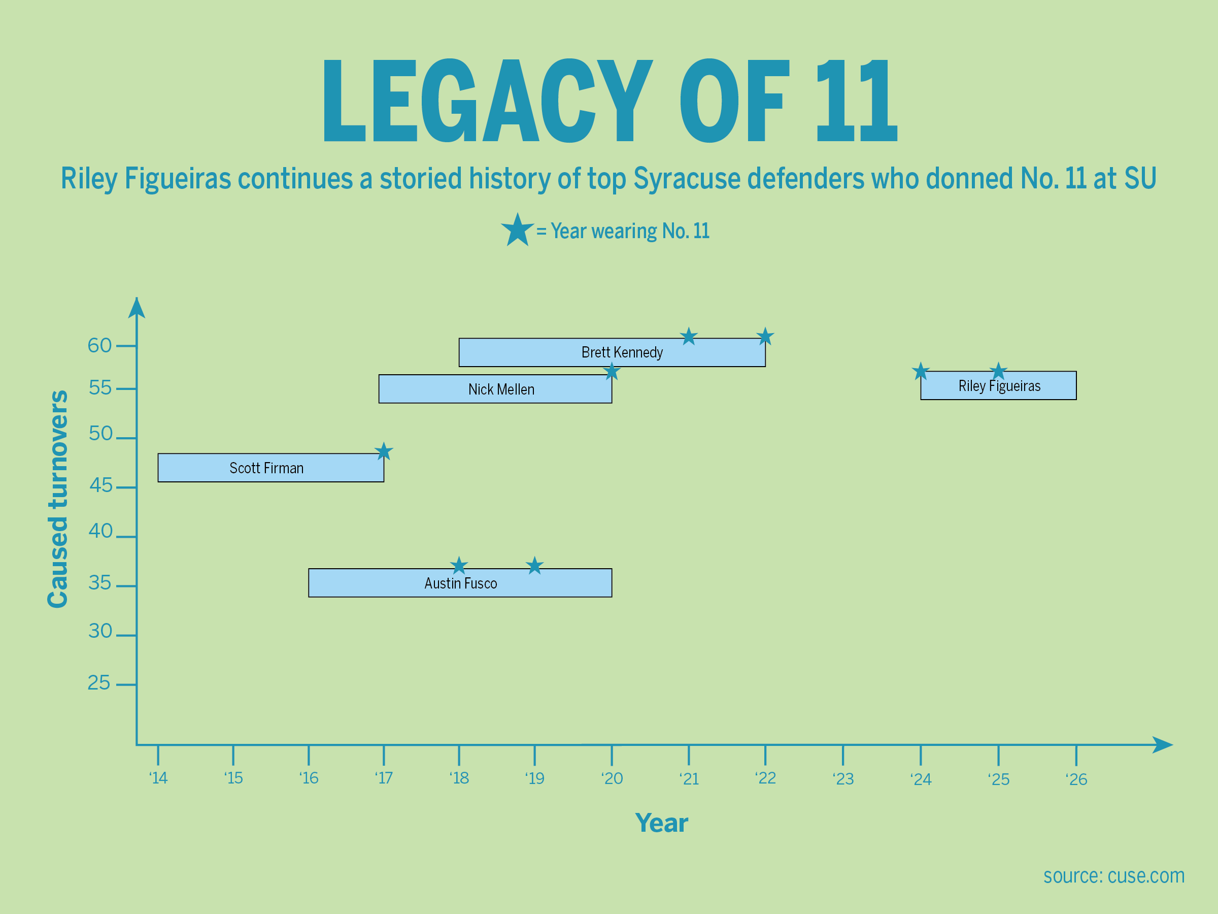Historically, the No. 11 has been given to some of Syracuse’s best defenders. Nine players have worn the number in the past two decades. Seven of them were All-Americans, and if everything goes to plan for Riley, he has a shot at making it eight.