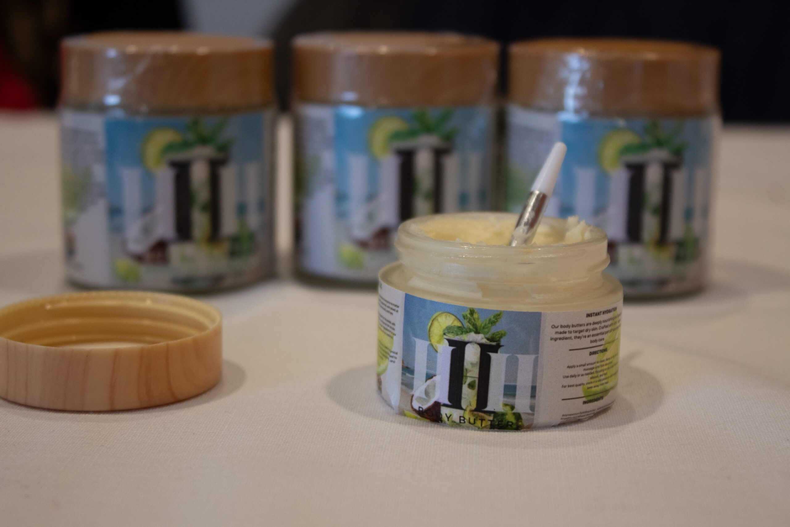 Senior Catherine Genao showcased her new body care line, Bodyfide, which she launched this month. Genao said she combined her chemical engineering major and creativity to create the brand. She began making body care products to help people with dry skin, like herself, and even created an oil with different-colored glitters.