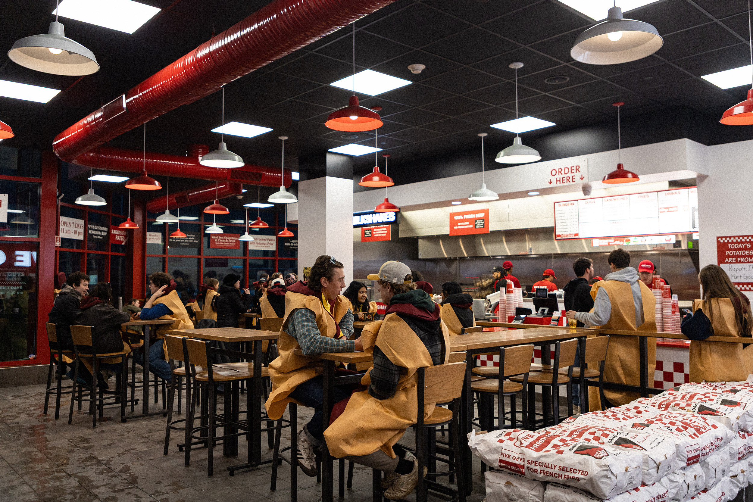 After bar hopping, hot dog-dressed students ventured to Five Guys for a snack.Courtesy of Joe Zhao