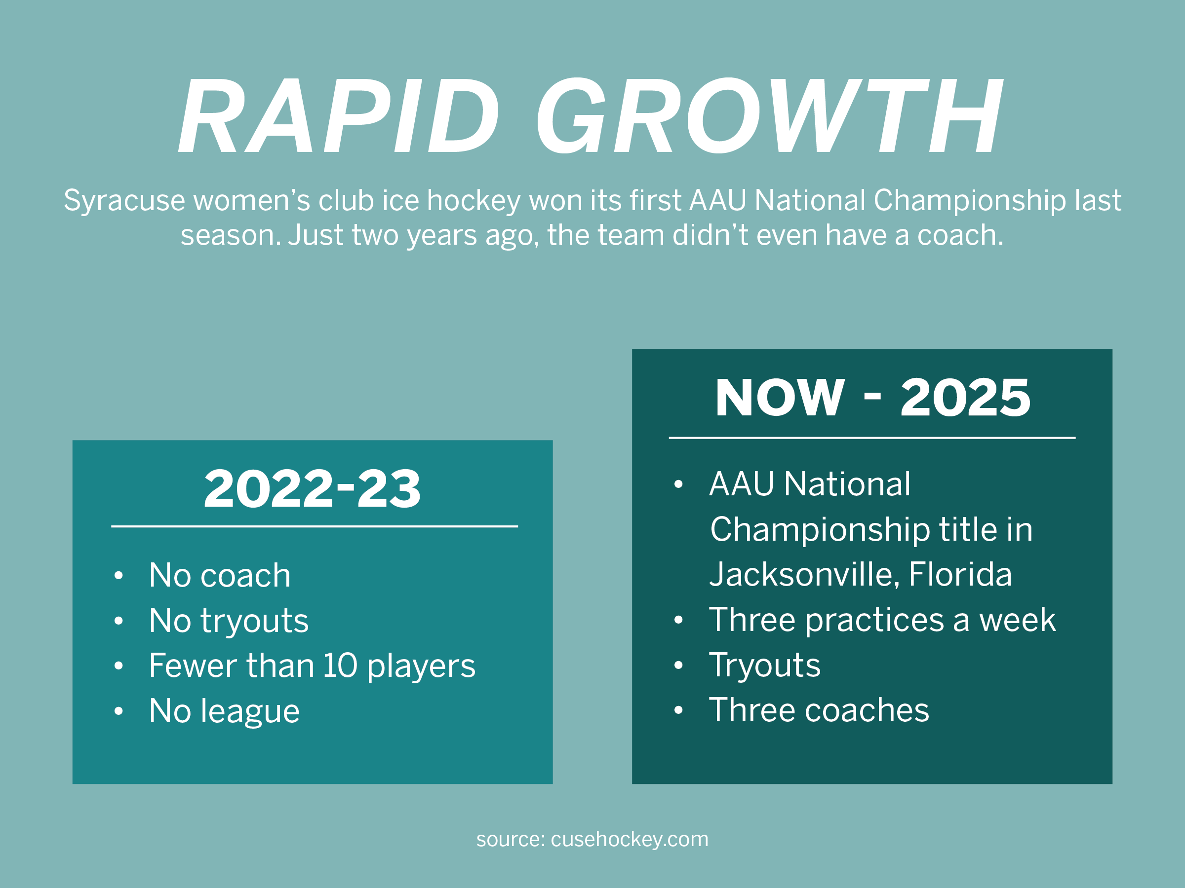 We’re legit. We’re here to compete, we’re here to play, we’re here to win.Eden Price, Syracuse women’s club ice hockey junior