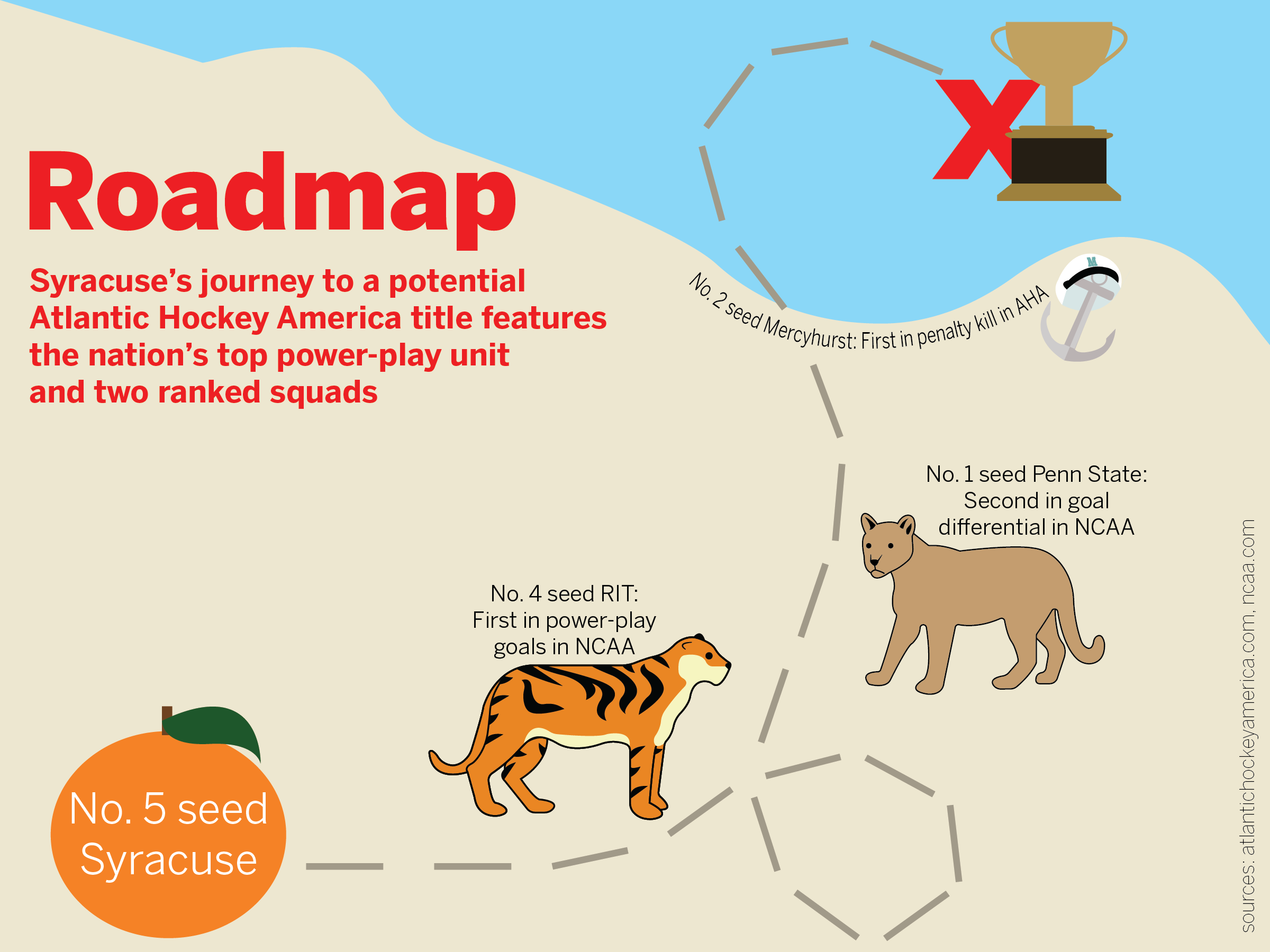Here’s No. 5 seed Syracuse’s (14-16-4, 10-11-3 AHA) roadmap to winning its first-ever AHA playoffs: