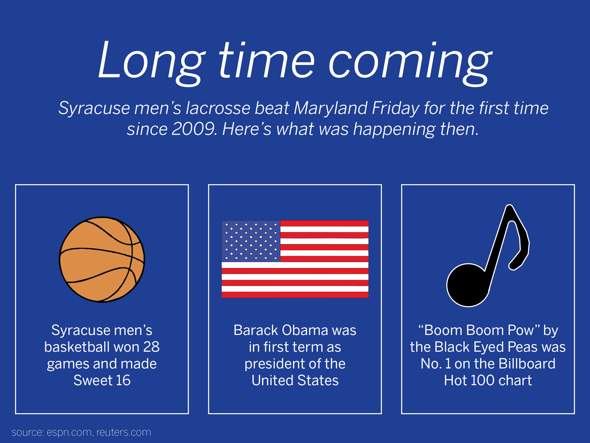 What was happening the last time Syracuse men’s lacrosse beat Maryland?