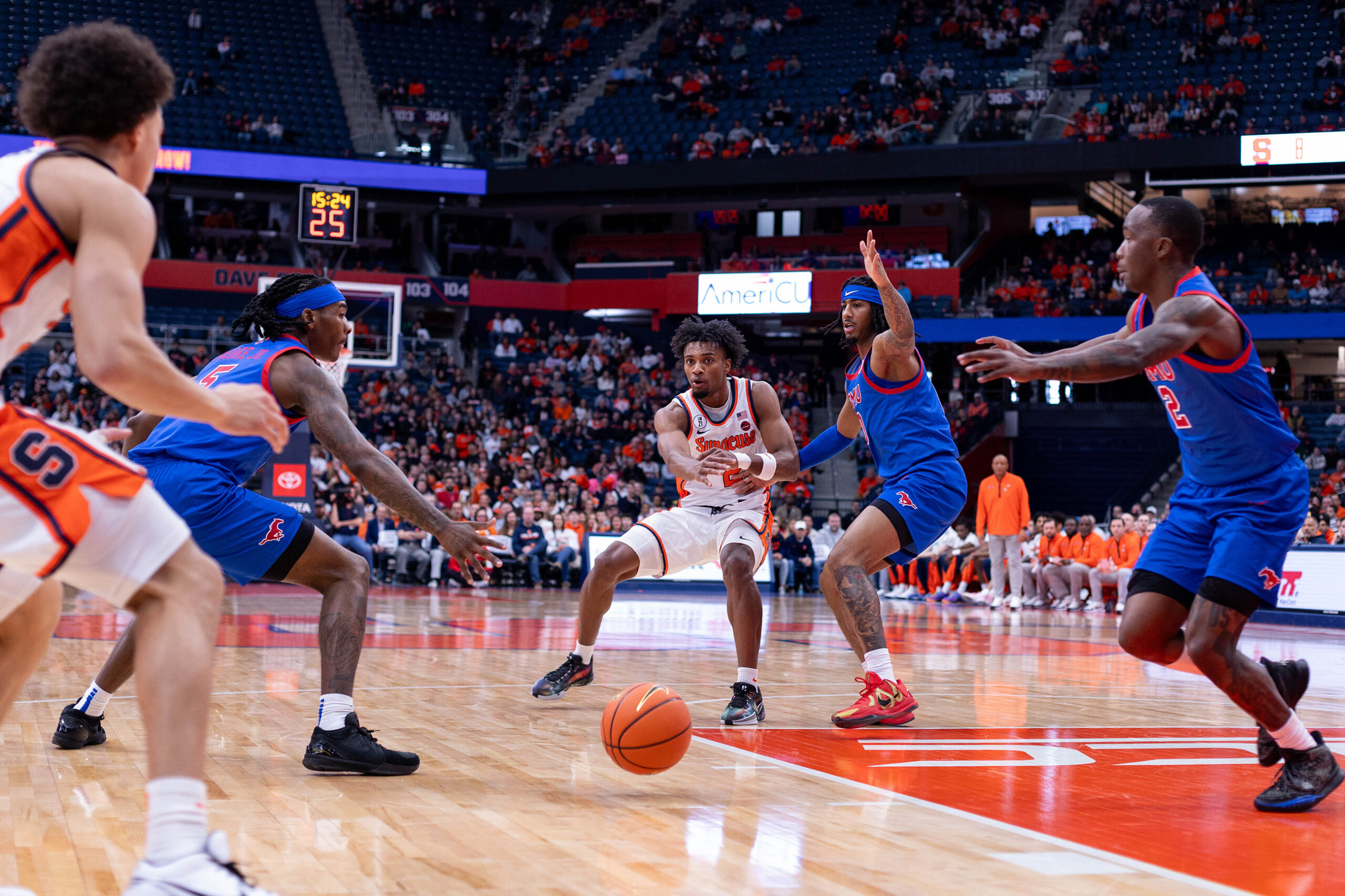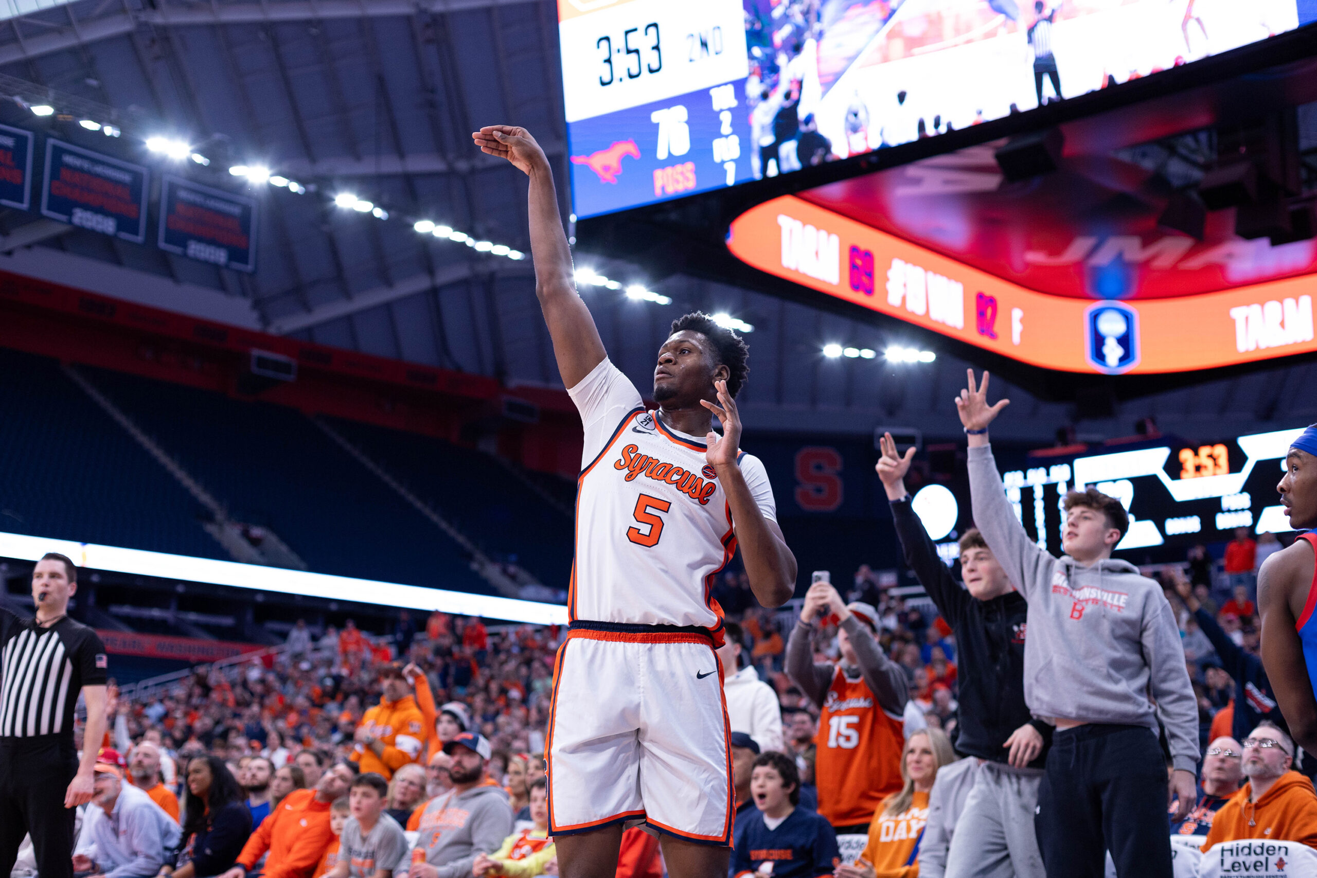Naithan George's playmaking has been a bright spot in Syracuse's disastrous season. George's 5.4 assists per game rank fifth in the ACC.