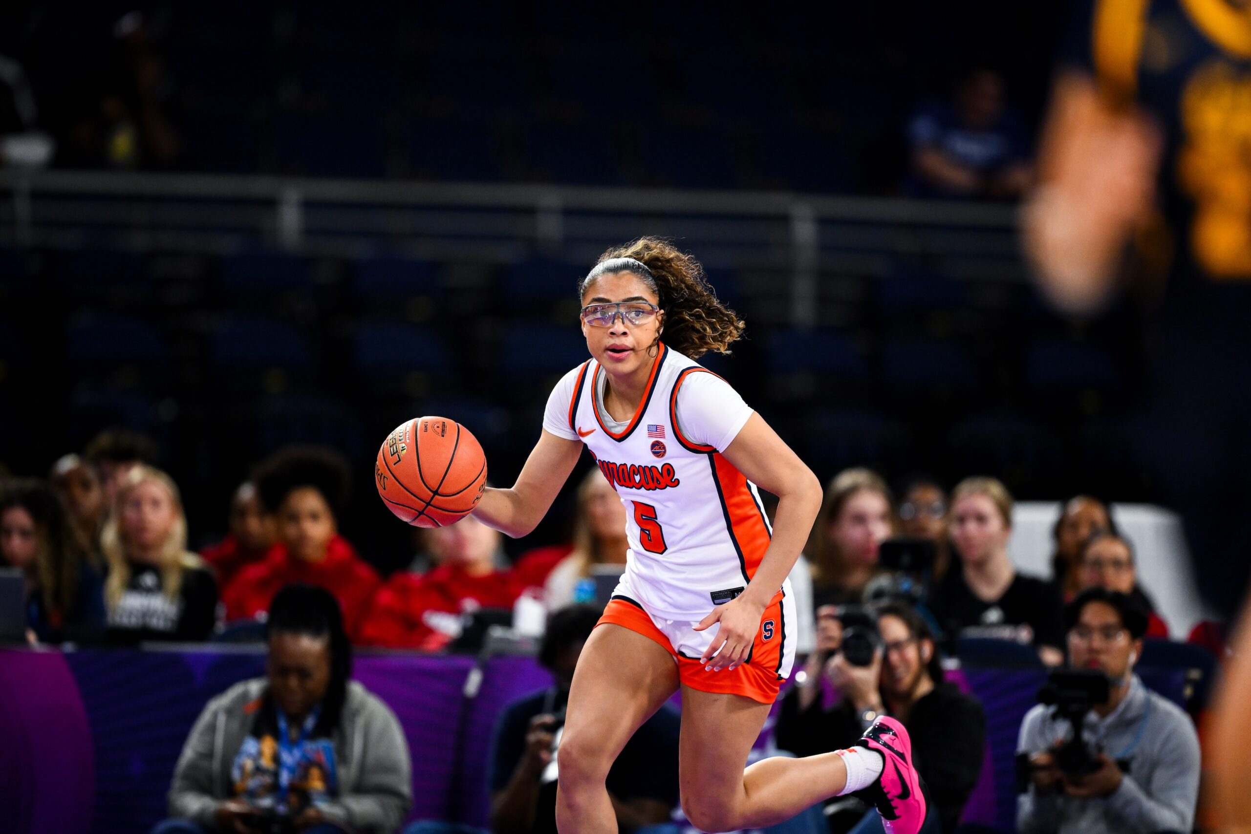Syracuse guard Laila Phelia scored 17 points in 38 minutes in No. 7 seed Syracuse’s 11-point win over No. 10 seed Cal Thursday, even standing in at point guard when Dominique Darius got injured in the third quarter. Courtesy of The Atlantic Coast Conference